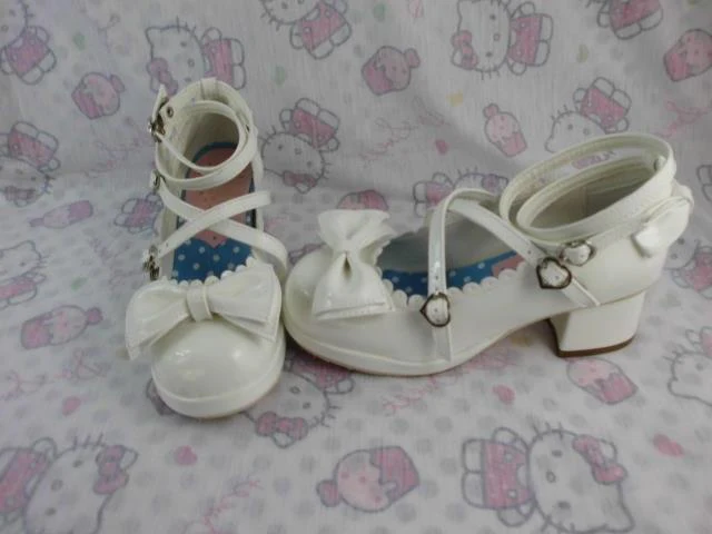- Round toe, platform shoes, chunky heels, crossover strap, belt buckle, bow on front and back, and handmade.
