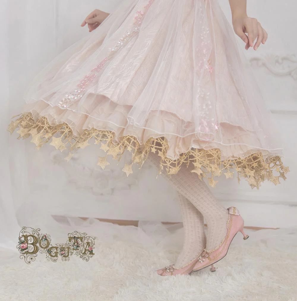 - This is a super pretty A-line underskirt with gold stars trimming.