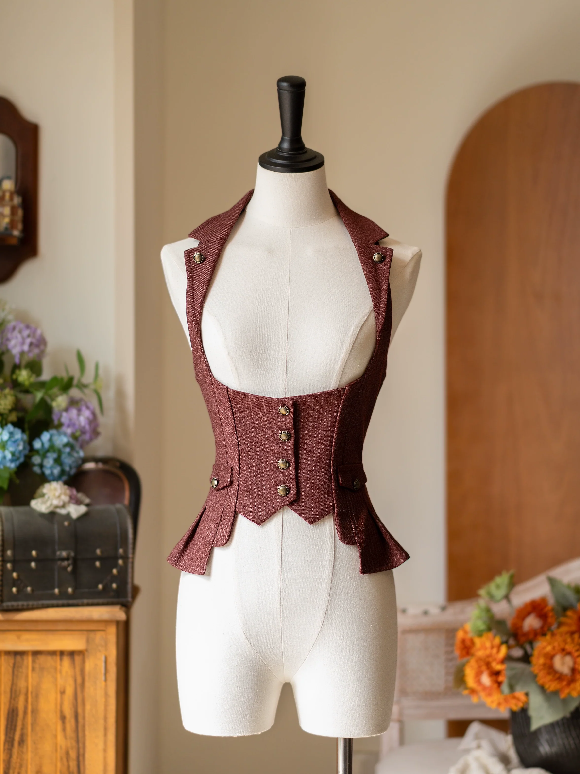 - Wearing Design: Vintage button closure, metal buckle at back, adjustable back elasticity, high figure adaptability.