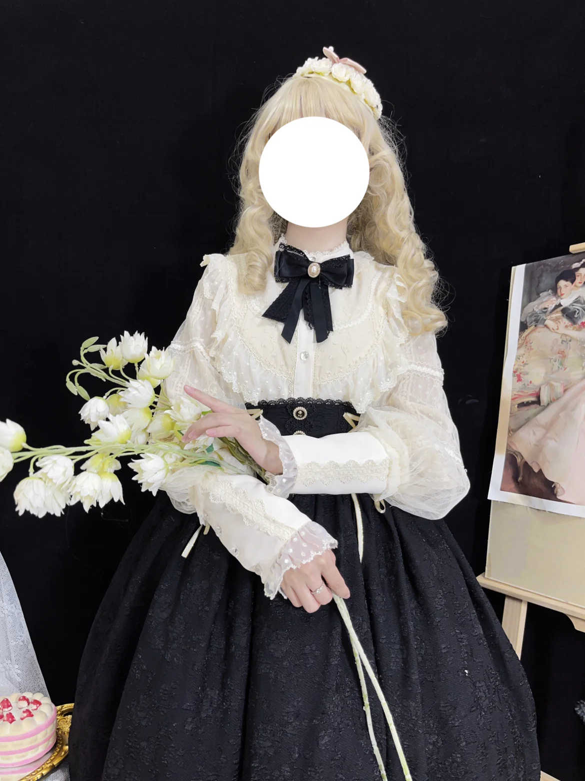 - This Lolita blouse features a lamb leg sleeve design, which not only helps to cover up the flab on the arms but also creates a charming body proportion. The large-area lace on the front adds a touch of elegance and grace, making it a perfect choice for any occasion.