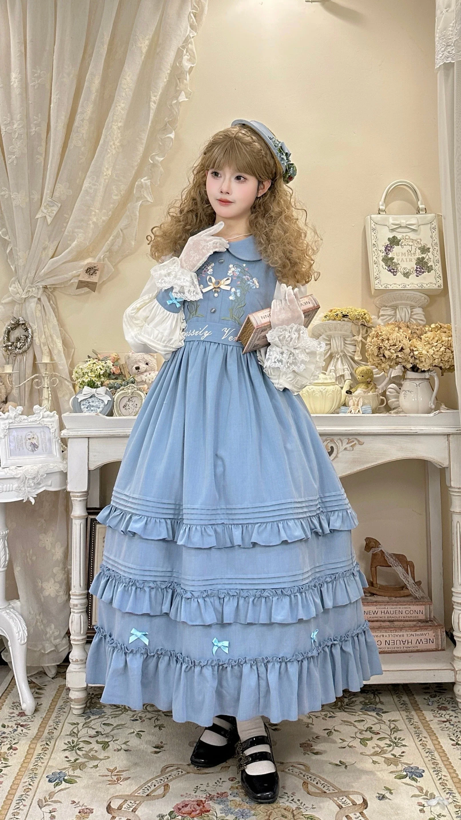 - The collar looks like flower petals, adding a soft touch, while the layered pintucks and ruffles on the skirt create a flowy and lively movement with every step.