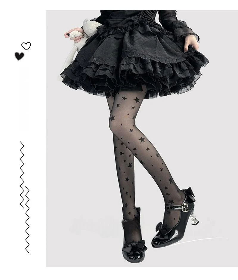 - Adorned with charming star patterns, these cute Lolita pantyhose add a touch of playful elegance to any Lolita outfit.