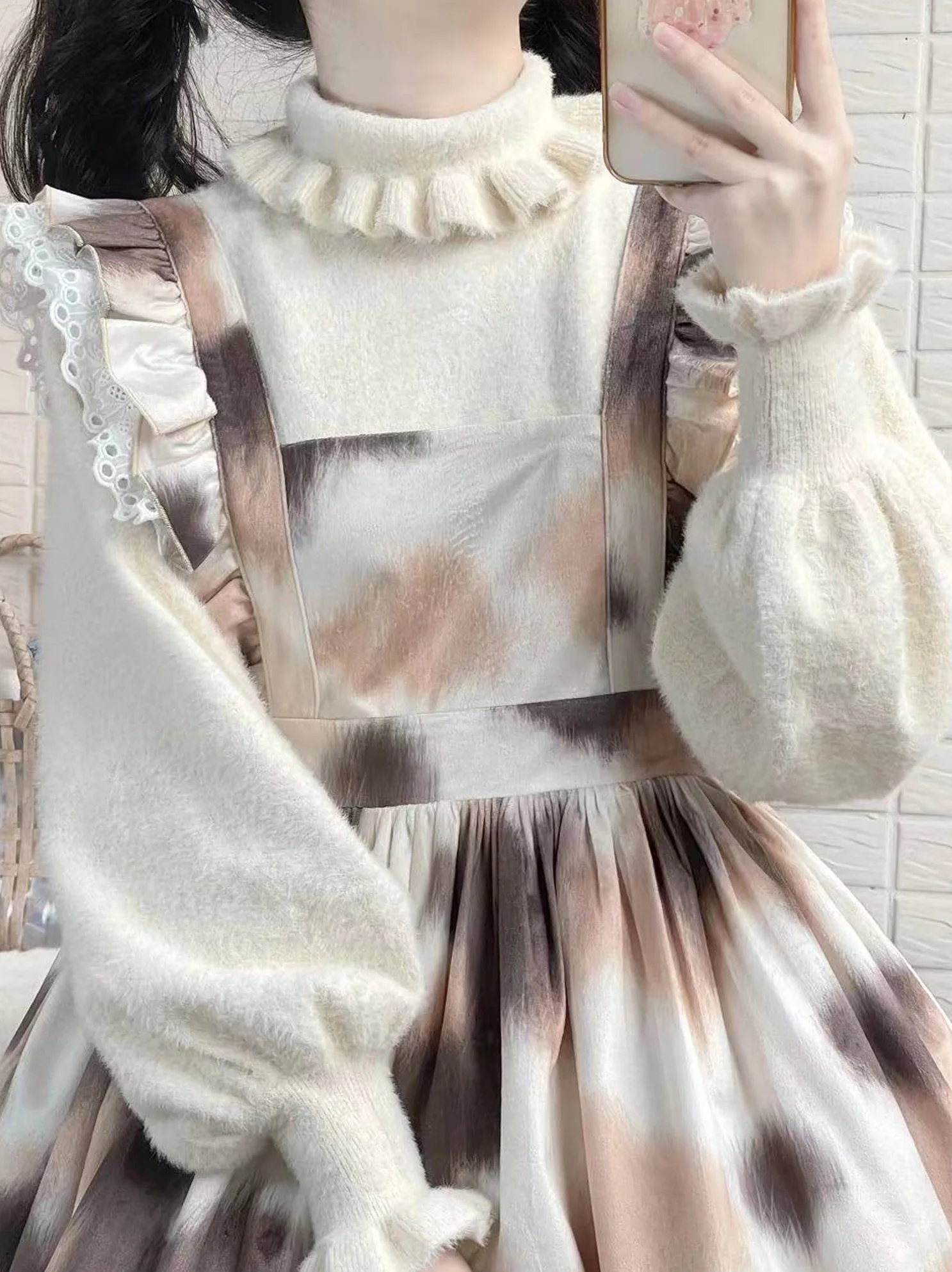 - This is a Kawai Lolita sweater with delicate designs.
