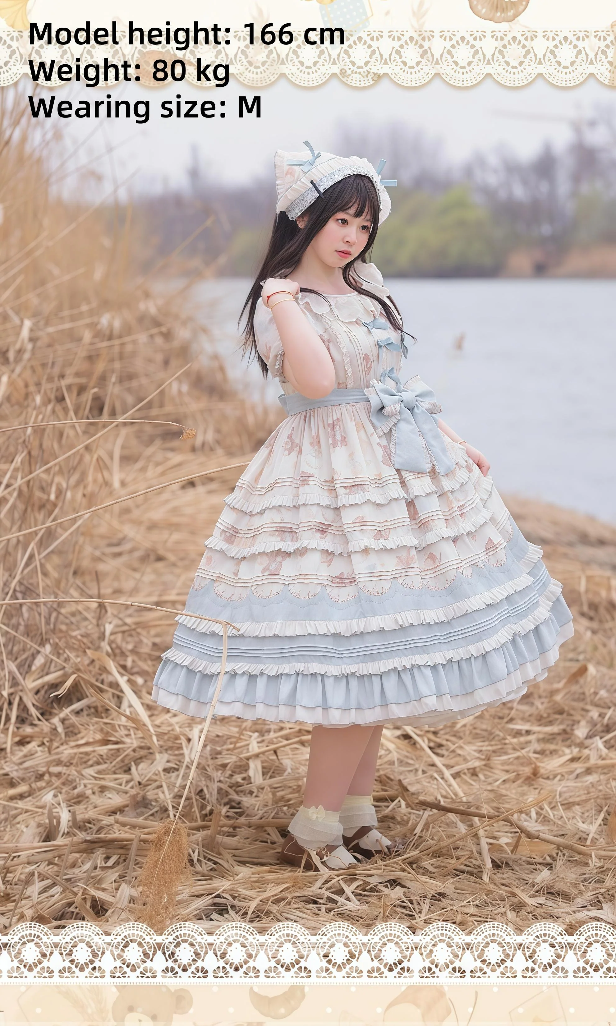 - Dance in fairytale hues--this Country Lolita OP suit blends teal and beige with playful bear prints, crafting a storybook-ready silhouette.