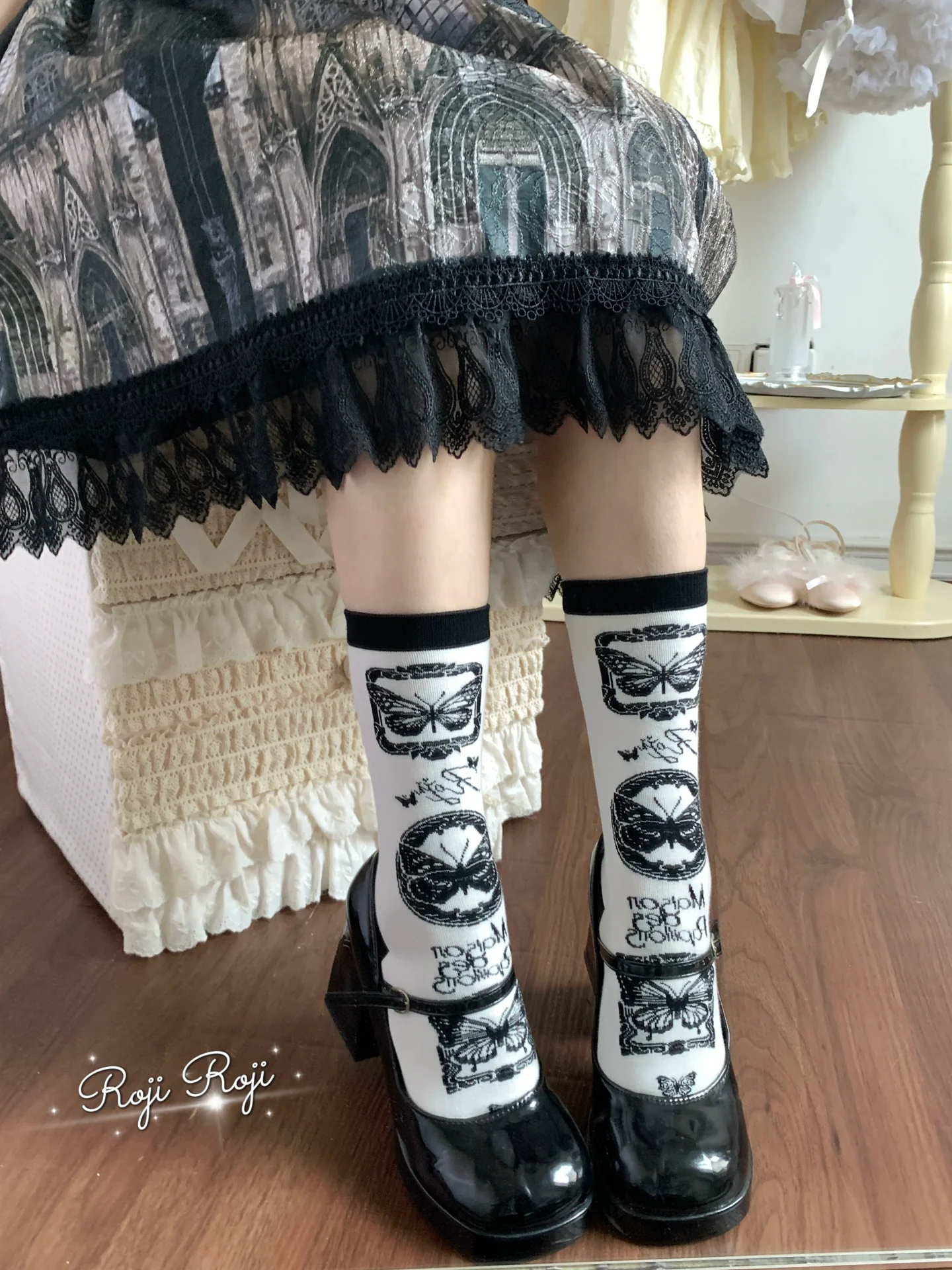 - Sweet Lolita Mid Calf Socks: Soft anti-pill cotton with delicate butterfly motifs.