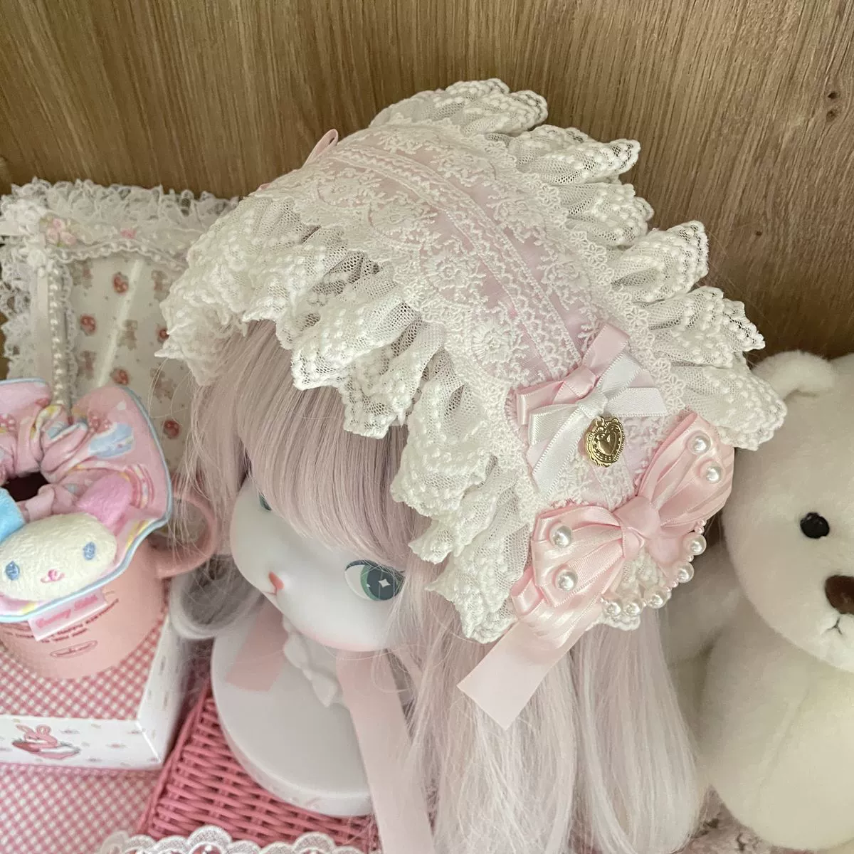 - Sweet Lolita Hairband: Adorned with delicate lace, bows, and pearl details, featuring small bows with golden heart charms for a sweet, charming look.
