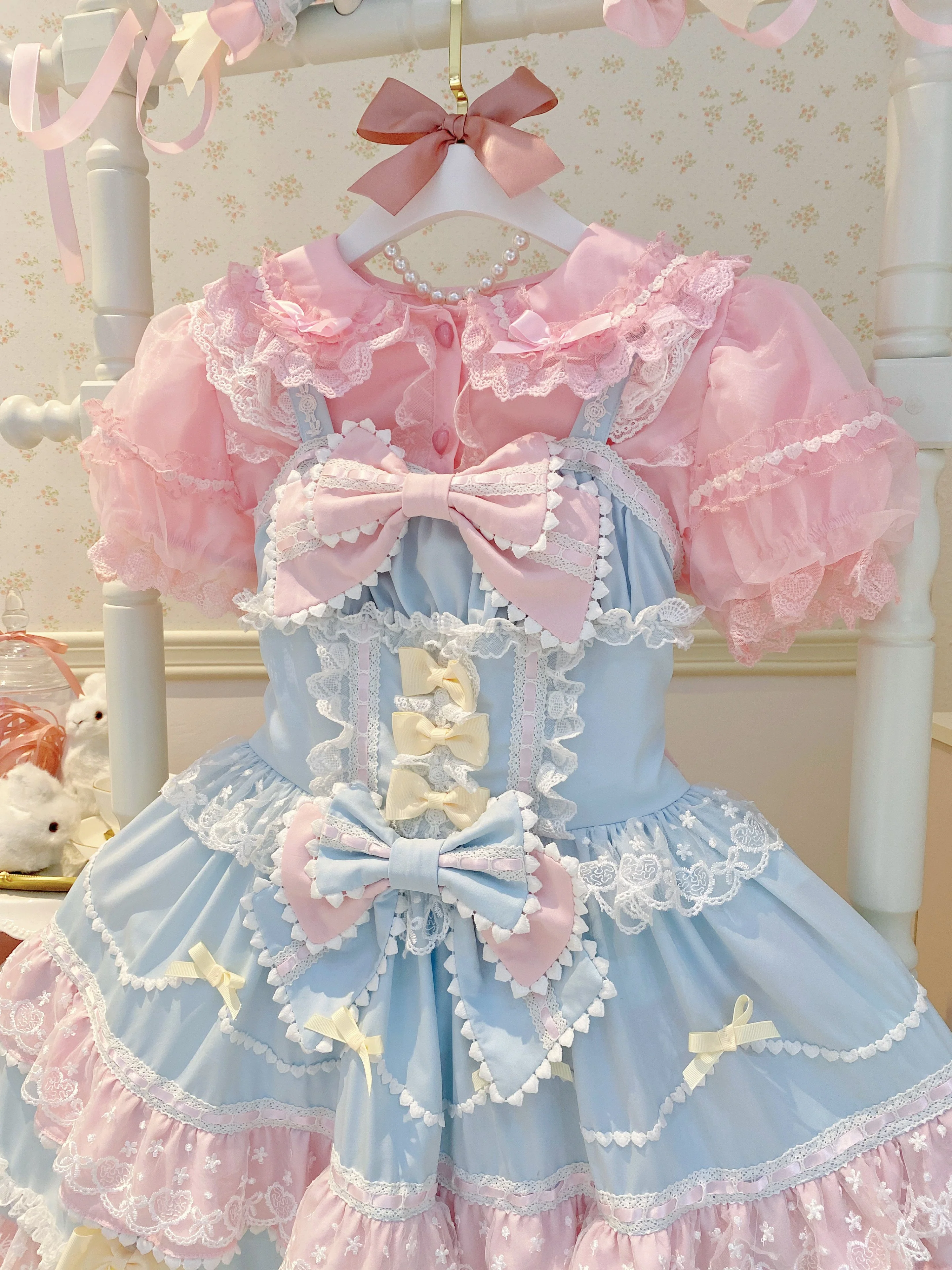 - This Sweet Lolita shirt features delicate multi-layered lace and airy tulle, creating an adorable puffed effect that's perfect for a dreamy, cute Lolita aesthetic.
