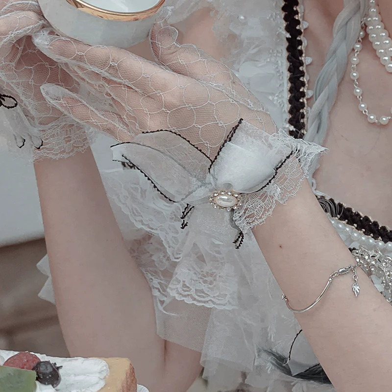 - Gloves: Transparent mesh design with ribbon bows, exuding elegance.